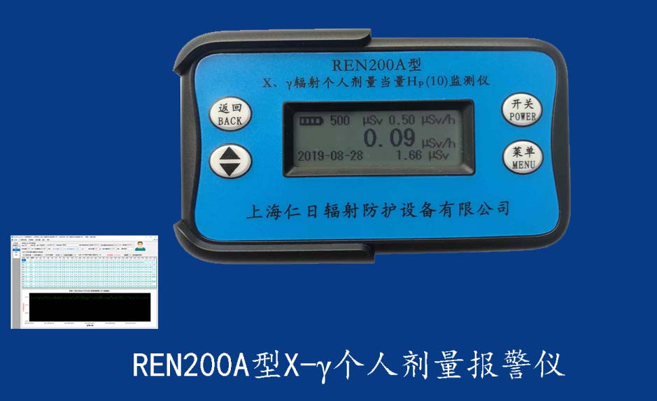 REN200A 個人輻射報警儀REN200A型X、γ輻射個人劑量當(dāng)量HP(10)監(jiān)測儀(簡稱:個人劑量報警儀)內(nèi)置高靈敏度蓋格計數(shù)管為探測器,主要用來監(jiān)測各種放射性工作場所的X、γ以及硬β射線的輻射,具有響應(yīng)快,測量范圍寬的特點。能顯示工作場所的劑量當(dāng)量率和累積劑量,更換電池時,日期及累積數(shù)據(jù)能永久保存。可選配RenRiPersonal個人劑量管理軟件,該軟件可存儲多個人的歷史數(shù)據(jù),能記錄日累積、月累積、年累積、輻照時長、計算平均劑量率、扣除或不扣除本底輻射,且以文字和圖譜的方式展現(xiàn)數(shù)據(jù)。廣泛應(yīng)用于核電站、加速器、鋼鐵、化工、同位素應(yīng)用、工業(yè)X、γ無損探傷、放射醫(yī)療、鈷源治療、γ輻照、放射性實驗室、核設(shè)施周圍環(huán)境監(jiān)測等領(lǐng)域中的工作人員進行個人安全防護監(jiān)測及放射性提示。&nb